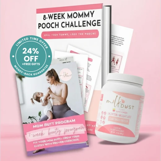 We created the Mom Butt 8-Week Workout Plan and the 8-Week Mommy Pooch Challenge—step-by-step eBooks made for moms. With realistic workouts and core-strengthening moves, they help you tone, rebuild strength, and feel confident again. Paired with Lactation Protein Support, you get the inside and outside tools to take back your body after baby.